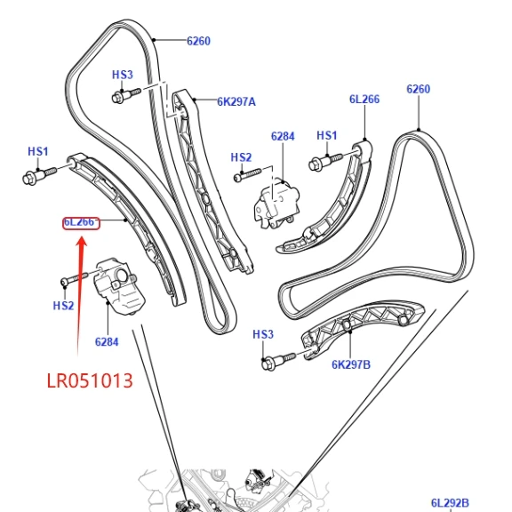ذراع توجيه شد سلسلة التوقيت 3.0 لتر 5.0 لتر DOHC لسيارة Land Rover Discovery 4 Range Rover Sport LR032048 LR051008 LR051011 012 013