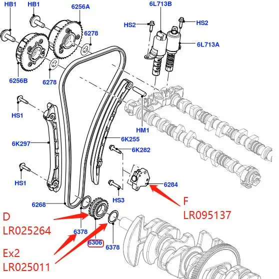 ذراع توجيه سلسلة التوقيت عمود مرفقي موتر ترس لسيارة لاند روفر LR2 إيفوك RRS جاكوار 2.0 لتر 16 فولت LR025000 263 632 264 LR095137