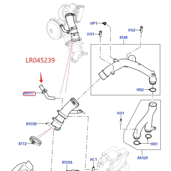 Throttle Body Heater Outlet Hose LR045239 Coolant Thermostat Water Pipe LR049990 For Range Rover 10-12 RR Sport 14- Discovery 4